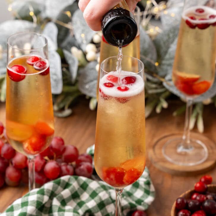 Crispy Parmesan crusted chicken with cheesy scalloped potatoes, skillet green beans, and eggnog muffins for dessert! Plus coconut date balls, chocolate chip cheesecake dip, pigs in a blanket, and festive mistletoe mimosas!