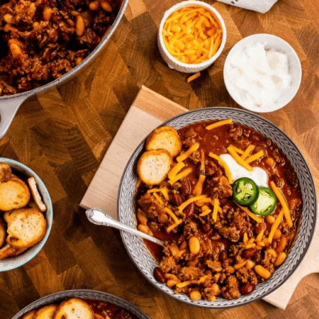 A hearty bowl of goodness loaded with beef, beans, and warm, spicy flavors, and leftovers are even better the next day!