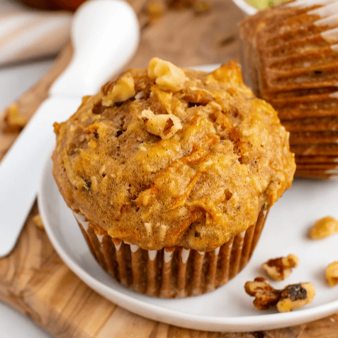 Loaded with carrots, coconut, walnuts, apples, zucchini, and the just right amount of spice, they're the perfect grab-and-go breakfast or snack.