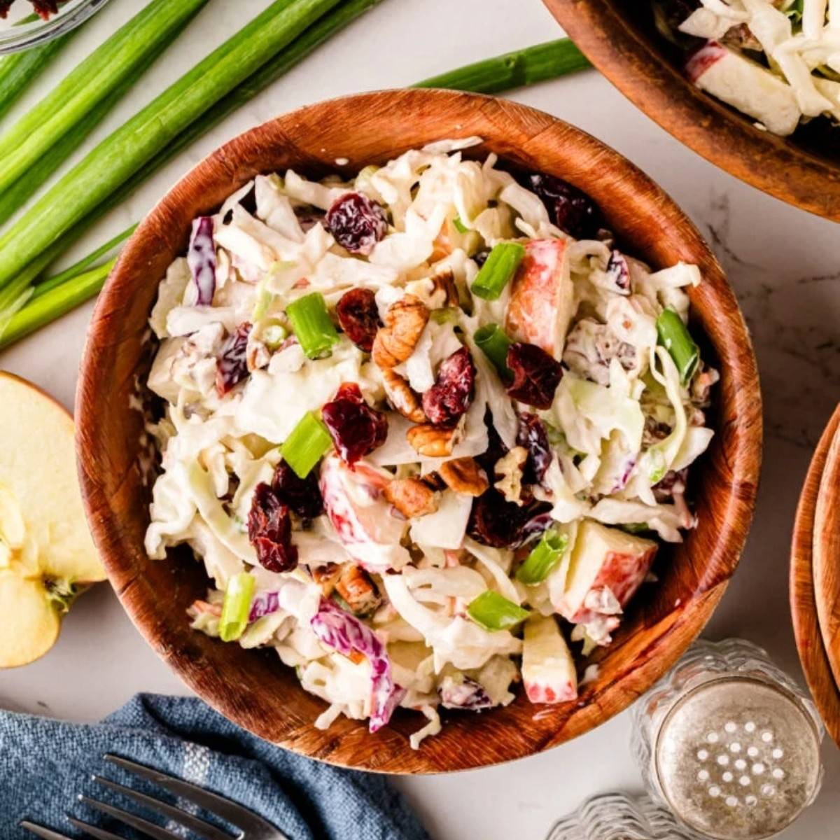 Sweet dried cranberries, crisp apple, crunchy pecans, and bright green onions all tossed in a perfectly creamy dressing!